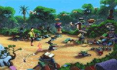 מוסיקת אווירה ראויה המלווה את לארי בשיטוטיו באי הטרופי בו מתרחש המשחק השלישי בסדרה (מקור: Quest Studios).
